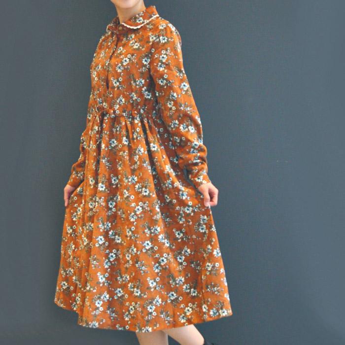 ワンピース 長袖 コーデュロイ ワンピース 花柄 襟 レトロ レディース ミディアム丈 長袖 ロング 体型カバー 秋 冬 ナチュラル ワンピ Rm 332 Tokohana 通販 Yahoo ショッピング